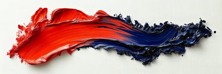 Abstract brush strokes of red and blue paint on white paper, showing the process of creative work with ample space for branding or messages