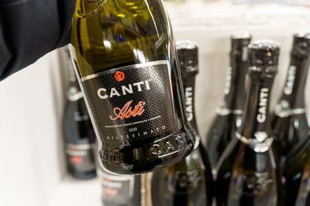 Tyumen, Russia-December 02, 2021: Canti company logo champagne alcohol, selective focus. Sale of alcoholic beverages