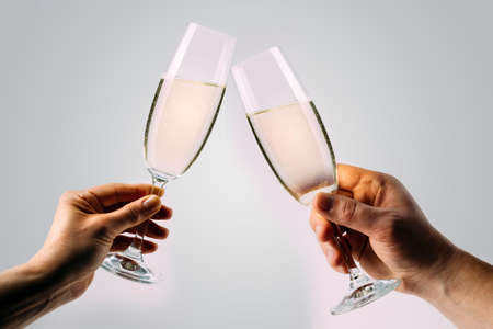 Two hands holding and toasting champagne