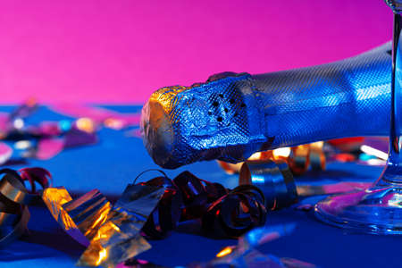 Champagne celebration party with bottle and glasses