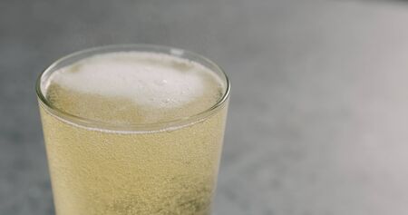 Champagne foam and bubbles in the glass closeup