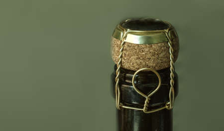 Italian Wine bottle neck with cork fastened with wire side view with copyspace.