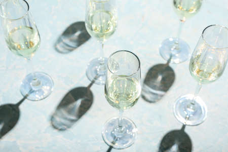 Champagne glasses on table closeup