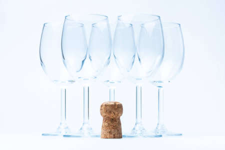 glass wine stand symmetrically with cork