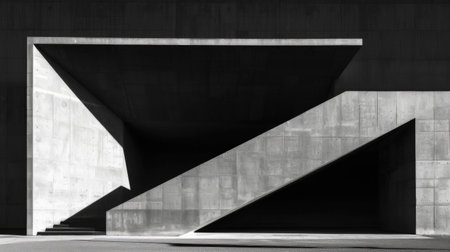 Contemporary urban art: monochrome abstract concrete architecture with modern geometric design and minimalist brutalist shapes