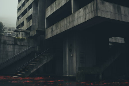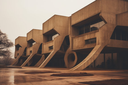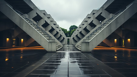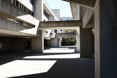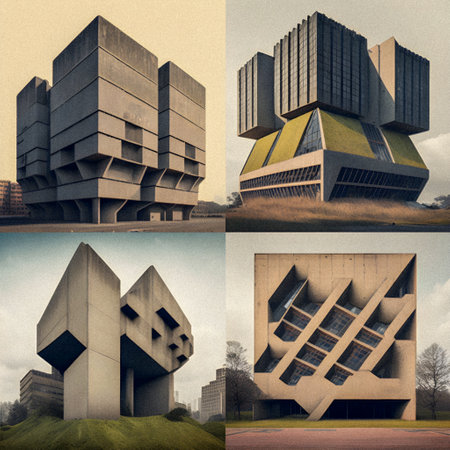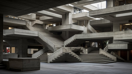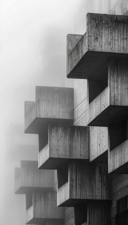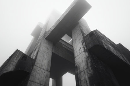detailed shot of imposing concrete elements in brutalist form, created with generative ai