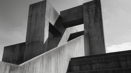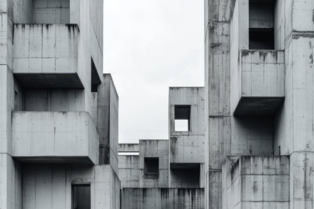 Contemporary urban art: monochrome abstract concrete architecture with modern geometric design and minimalist brutalist shapes