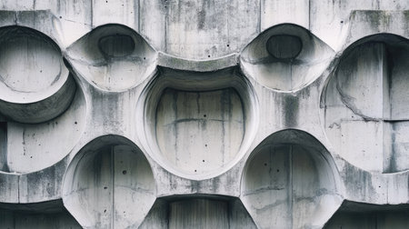 Explore the unique textures and circular patterns of this concrete wall. Perfect for architectural designs, backgrounds, and minimalist art projects.