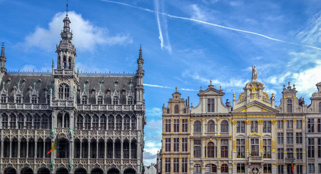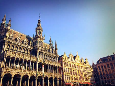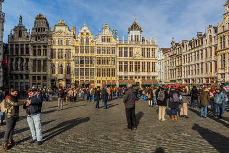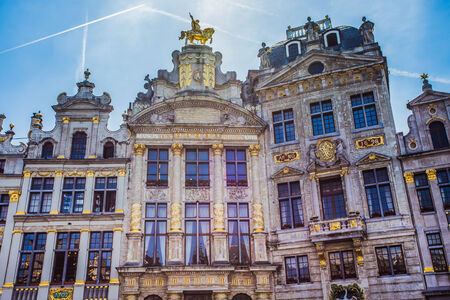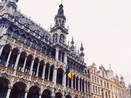 Brussels, Belgium - April 22, 2017: Guildhalls on the Grand Place - Grote Markt is the central square of Brussels. Belgium.