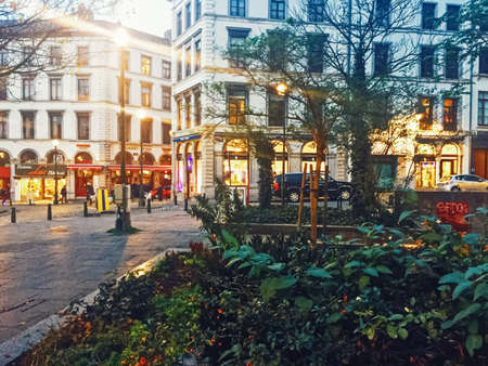 Brussels, Belgium circa January, 2020: Streets of Brussels, the capital city of Belgium, european architecture and historical buildings at night