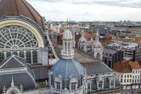 ANTWERP, BELGIUM - JULY 5, 2016 : Exterior view of Antwerp Central station. Antwerp Central railway station is the most famous and main station in Antwerp.