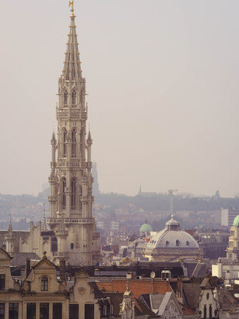 Brussels cityscape featuring the brussels town hall and cloudy sky