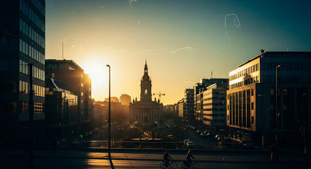 Cityscape of Riga, Latvia at sunset. Double exposure.