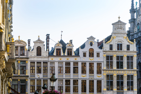 Brussels, Belgium - July 14, 2019: Colorful brick buildings of typical Belgian architecture in Brussels, Belgium