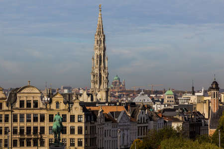 Skyline of Brussels, capital of Belgium. Brussels Town Hall tower and Basilica of the Sacred Heart visible.