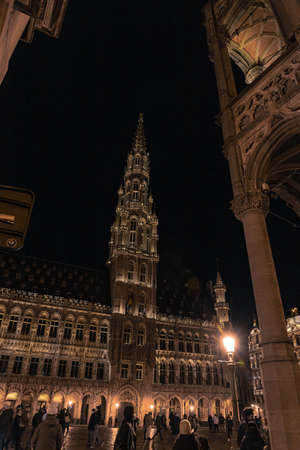 Brussels, Belgium circa January, 2020: The Grand Place square in Brussels, the capital of Belgium, famous historical landmark at night