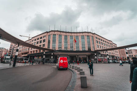 Brussels, Belgium - May 03, 2019: View of the entrance group of the station building in Brussels, Belgium