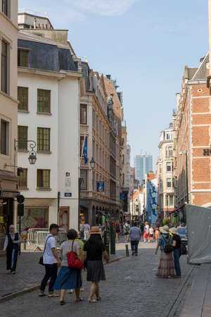 BRUSSELS, BELGIUM - June 16, 2016. Street view of old town in Brussels city, with a population of over 1.8 million, the largest in Belgium.