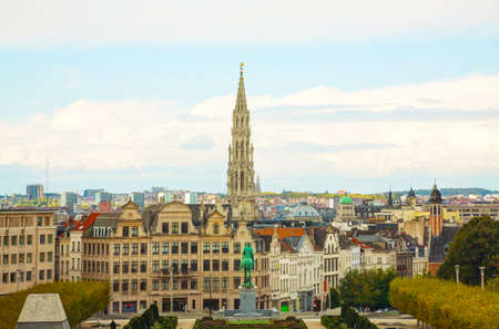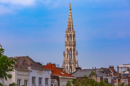 The spire of the Brussels City Hall seen from the Mont des Arts, Belgium