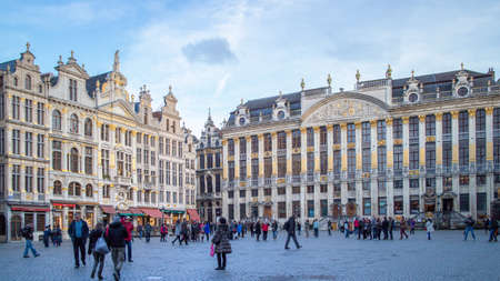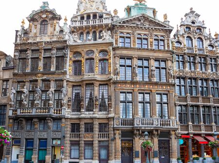 Brussels, Belgium - April 22, 2017: Guildhalls on the Grand Place - Grote Markt is the central square of Brussels. Belgium.