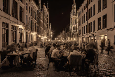 Generative AI : Street view with cafe terrace during the morning in Antwerpen city in Belgium