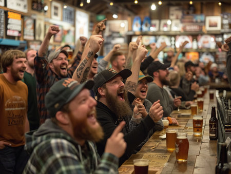 A group of people drinking beer at the pub's brewery restaurant AI generated