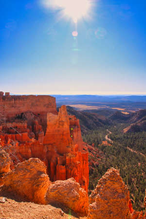 The Bryce Canyon National Park, Utah, United States fantastic red hoodoos and bright light