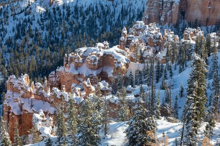 Winter overview of the Bryce National Park with snow, Utah, USA.