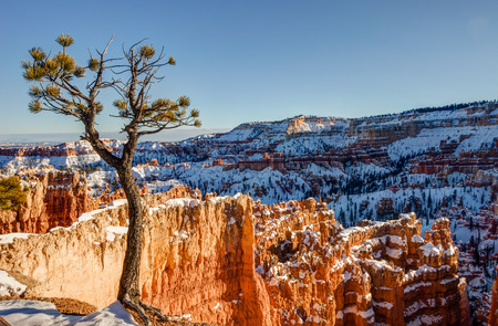 Lone bristle cone pine tree looking out over the Amphitheater at Bryce Canyon National Park, Utah