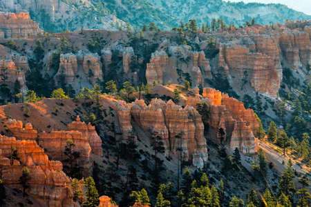 The first rays of the sun rush in Bryce Canyon, Utah, USA
