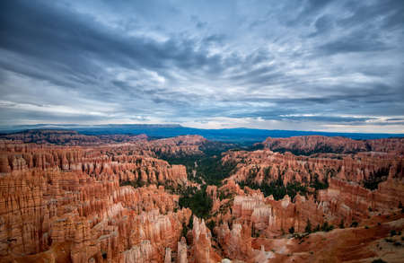 Valley of hoodoo rocks at Bryce Canyon National Park, Utah, on a overcast day.