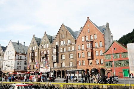 Bergen / Norway - 26 Jun 2012: Bryggen Hanseatic Wharf in Bergen city, Norway