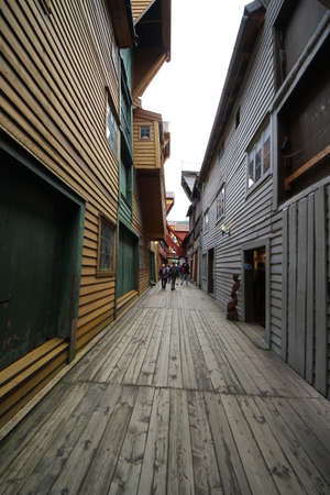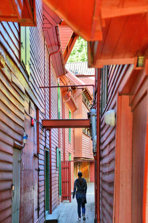 Bergen city, Norway. Back alleys of wooden Bryggen harbor district