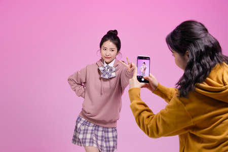 mz generation Asian Korean female hipster influencer, creator concept : creating short form video content
