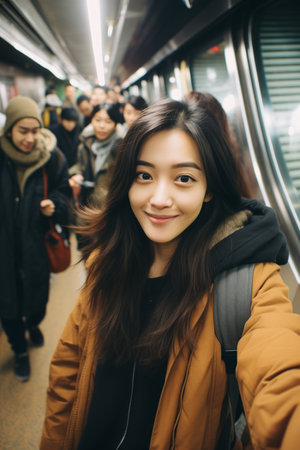 Photo of young Asian girl in the subway regarding the importance of public transportation.