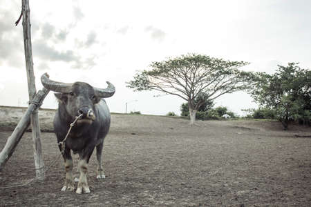 Thai buffalo are staring in countryside thailand