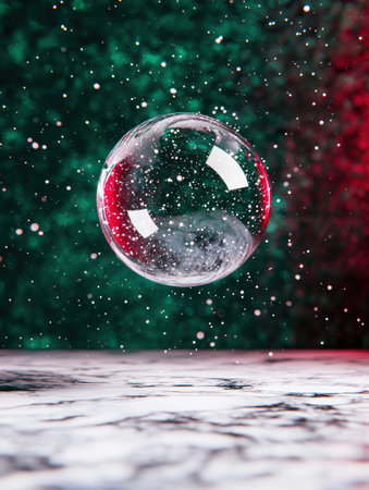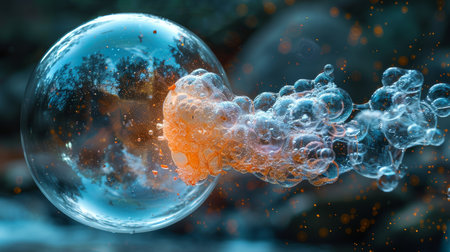 Visually striking macro shot of a vivid bubble with reflections and glowing particles, evoking a sense of wonder and curiosity.