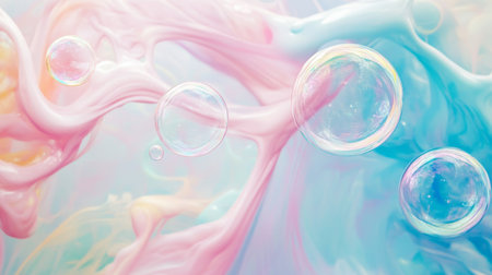 Pastel fluid art with soap bubbles, abstract background. Creative color and texture design concept