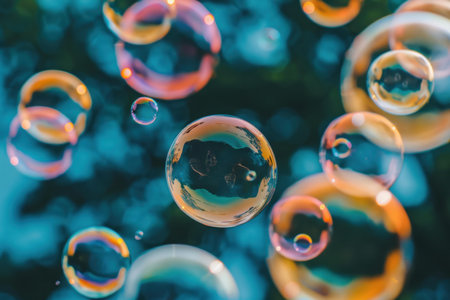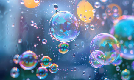 Iridescent bubbles create a colorful overlay texture with soft reflections