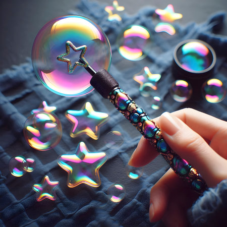 A magic wand that creates harmless bubbles in different shapes, Ai created image