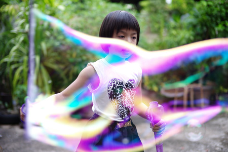 Thai little girl blowing bubbles