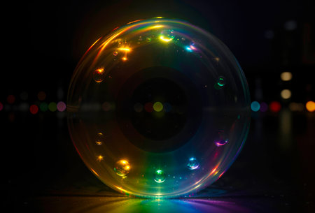 Rainbow Soap Bubble with Bokeh Lights