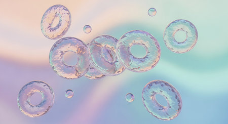 Iridescent bubbles create a colorful overlay texture with soft reflections
