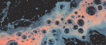 Dynamic bubbles create immersive textures with striking shadows against black background