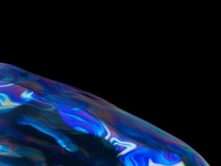 Soap holographic bubble background. Iridescent liquid melted glass wallpaper. 3d abstract dark luxury fluorescent background