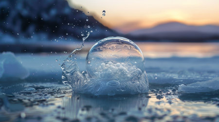 AI Generated. Frozen Bubble Glowing in Snowy Evening Light