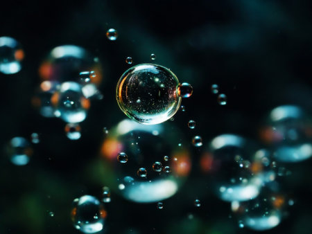 Bubbles create a delicate atmosphere with soft highlights against a black background