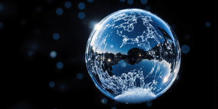 Frozen Bubble Magic Perfect soap bubble captured at the exact moment of freezing, revealing intricate ice crystal patterns forming across