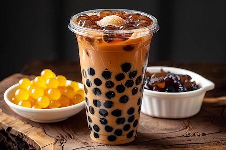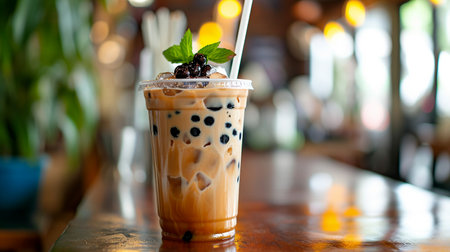 A chilled glass of bubble tea with tapioca pearls, the perfect refreshment for any day.