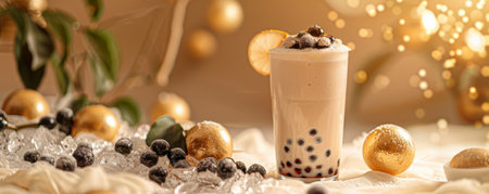Mockup. Bubble tea on a pale gold background, creating a luxurious and warm atmosphere for your design.